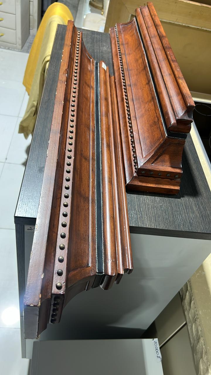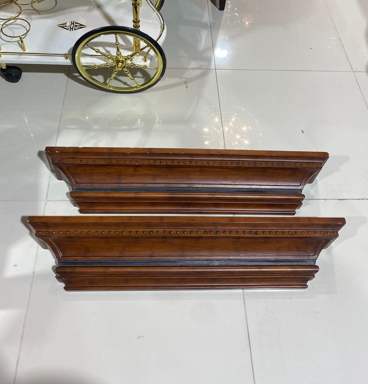 Дизайнерская навесная полка, декорирована кожей и бронзовыми штифтами.