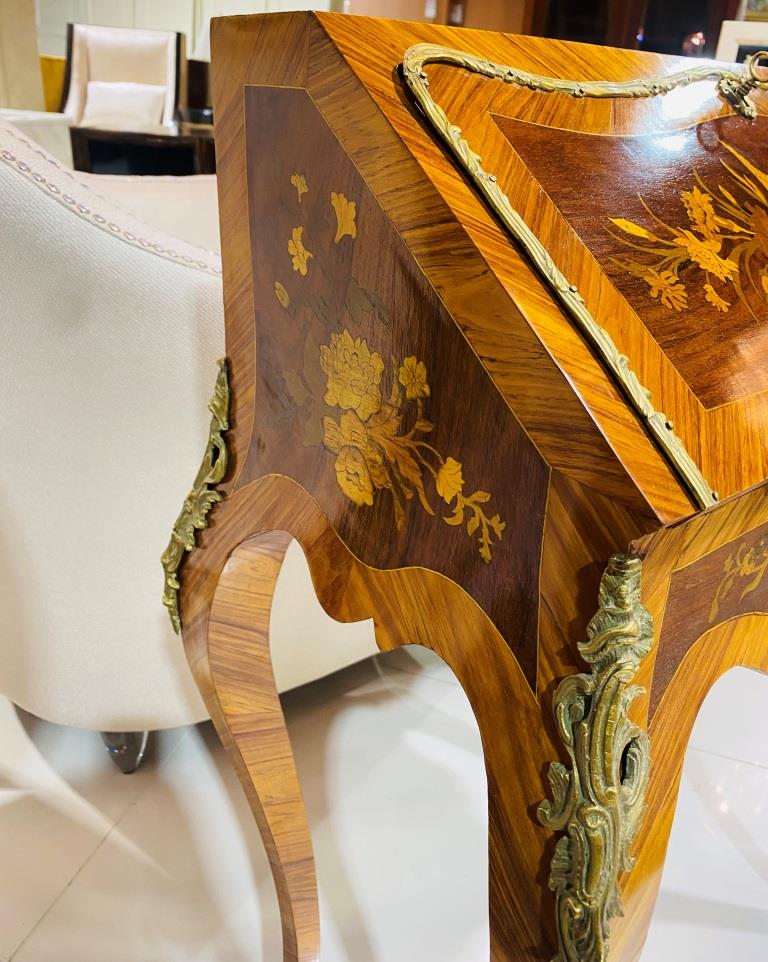 Каркас дуб, шпон розового дерева. Маркетри различных пород дерева.
