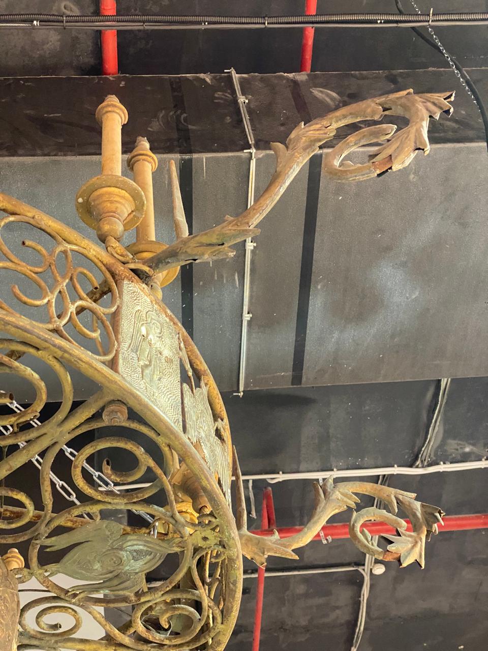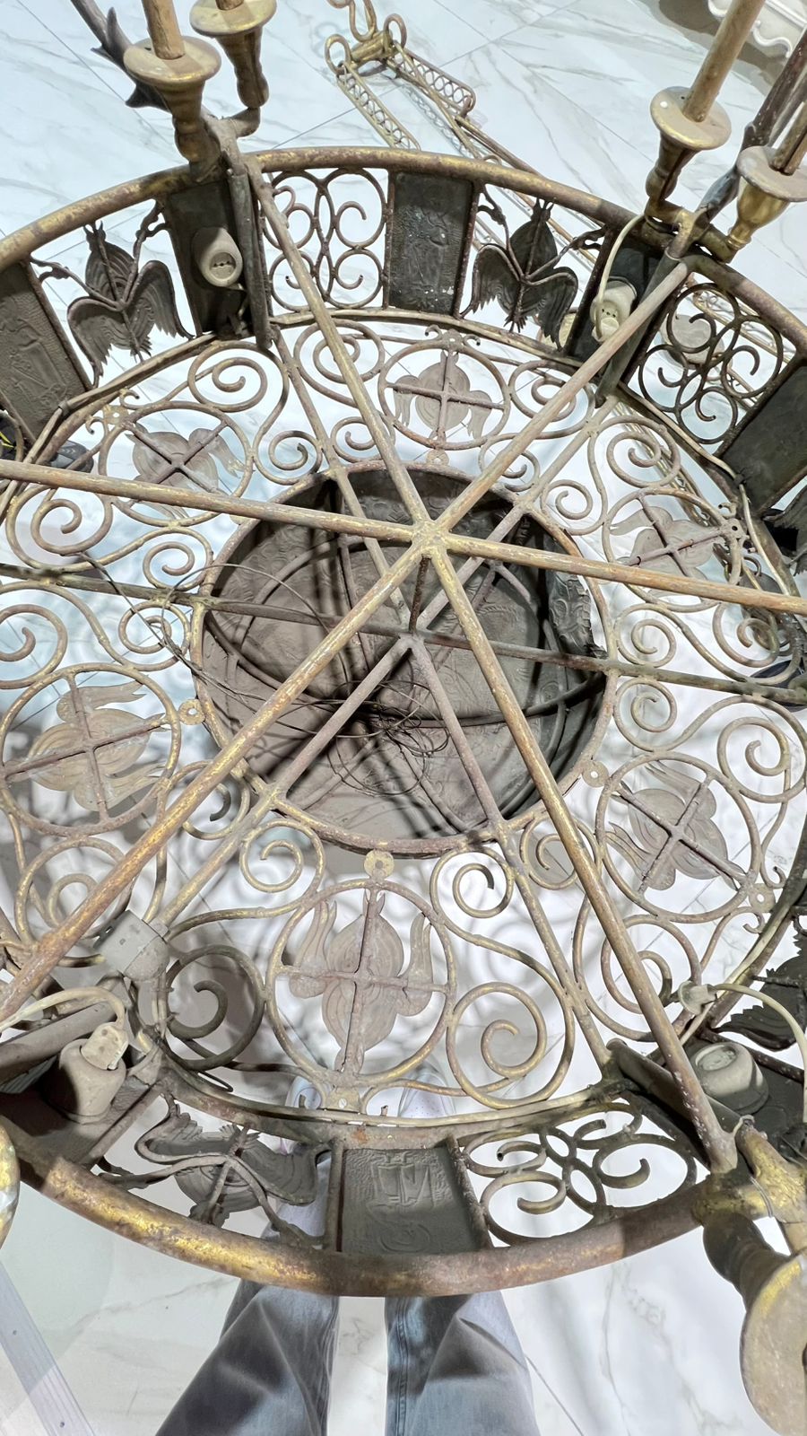 Уникальная люстра с элементами из латуни- исторический реквизит из Большого театра для оперы "Борис Годунов", ручная работа, СССР, 1946 год.