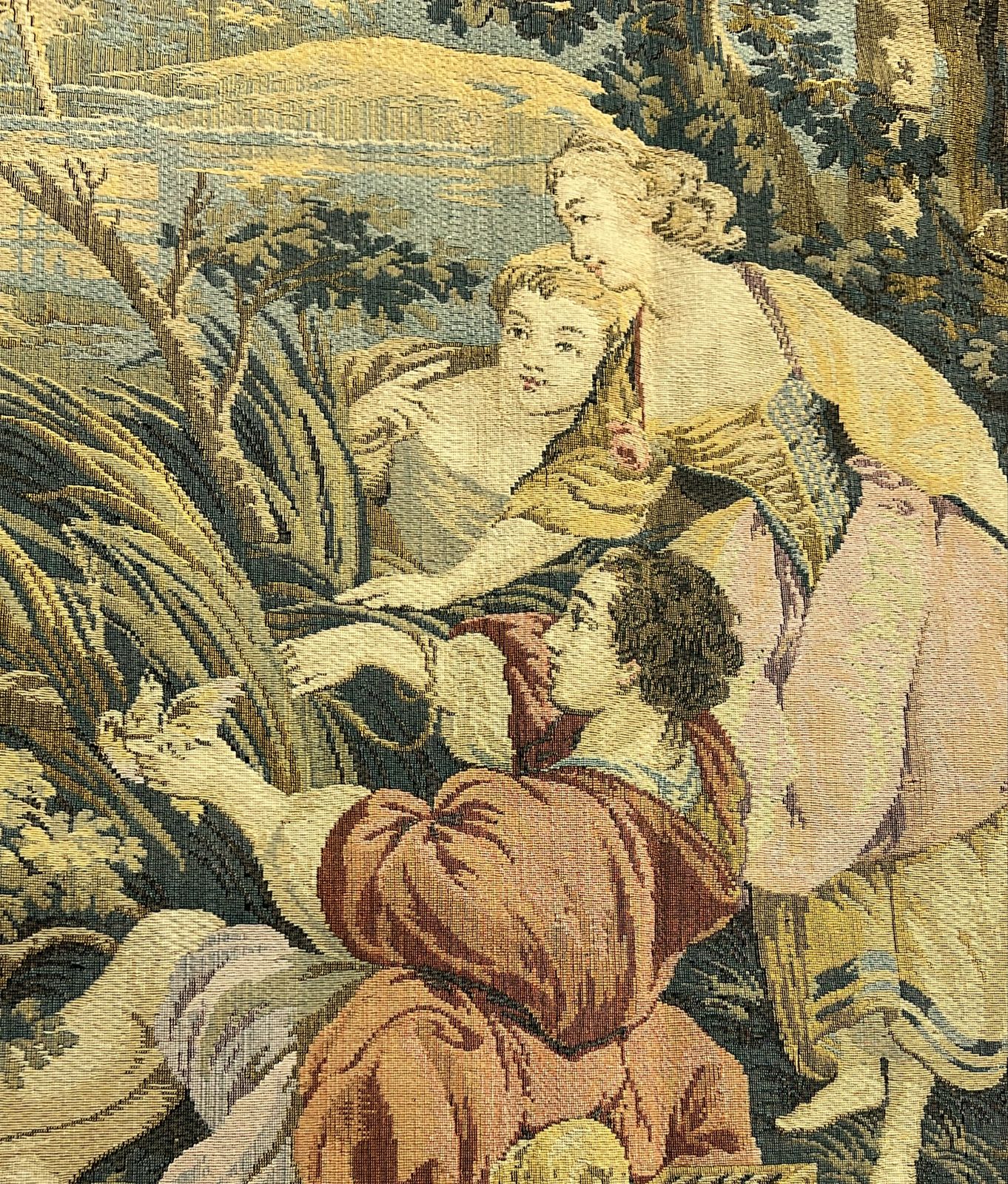 Гобелен винтажный pastorale в пастельных тонах- живописный жанр, изображающий мир и гармонию сельской жизни во всей ее красе. Постоянно удивляют мастера гобеленового искусства прежде всего выбранной темой, передача на плоскости лиц персонажей с их настроением. Передача на плоскости трехмерного пейзажа с дымкой и перспективой, количество персонажей и деталей.