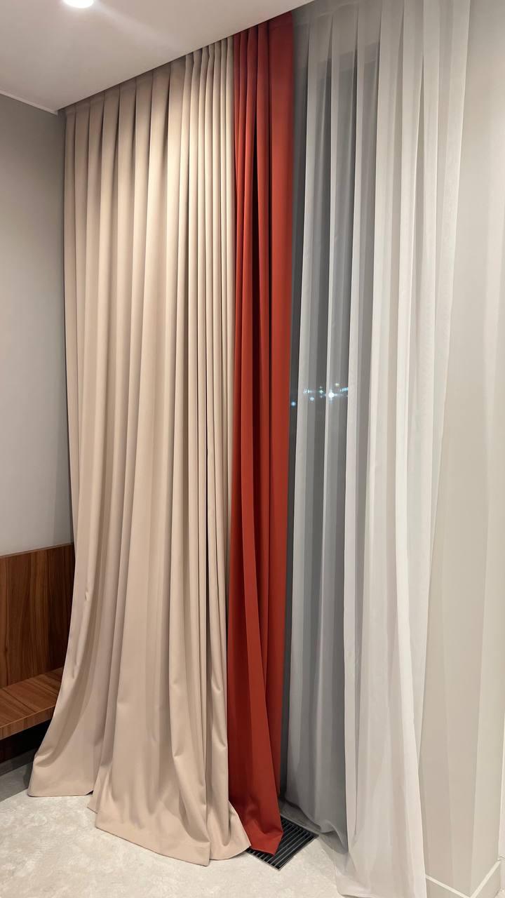 Комплект двухцветных штор из 2-х полотен + тюль.