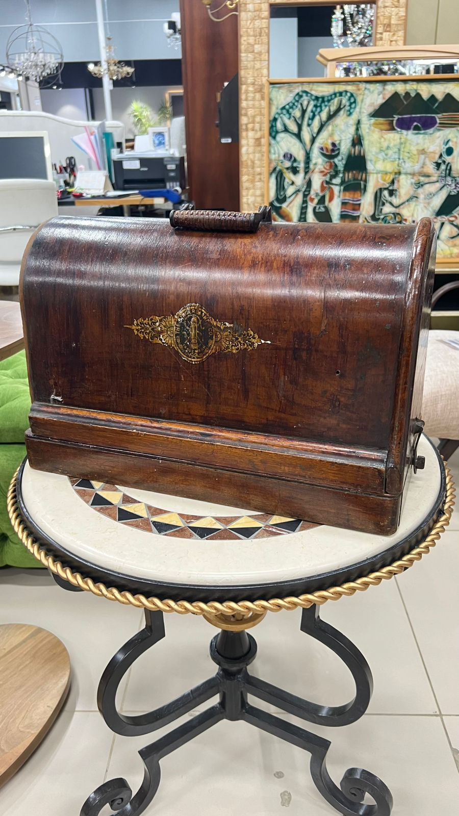 Антикварная ручная швейная машина Зингер.