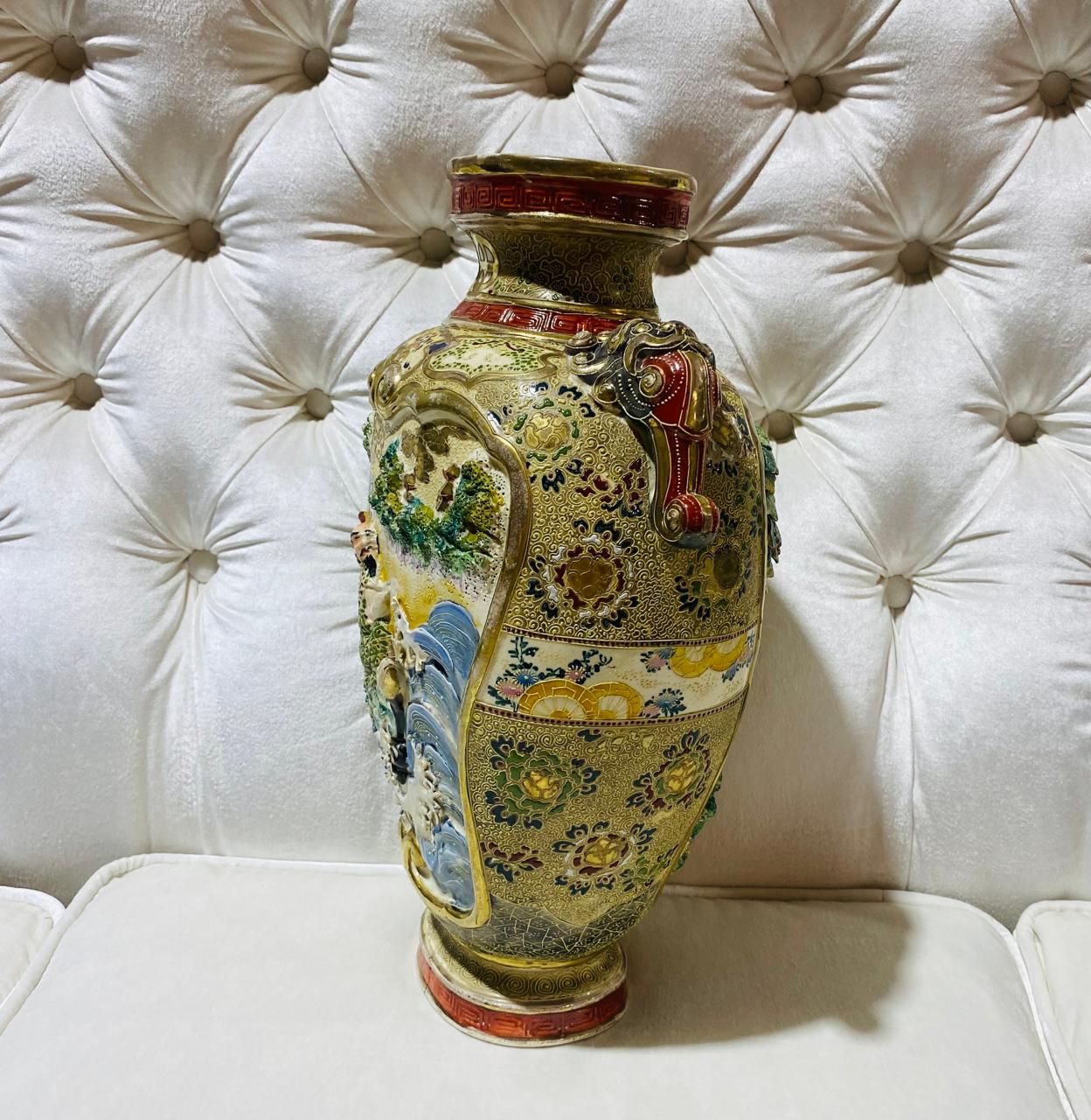 Антикварная ваза Сацума, выполнена в технике кракле. Фарфор, роспись эмалевыми, золотой краской. Надглазурная и подглазурная роспись. Ручки вазы выполнены в виде драконов. Дракон - это один из самых важных символов в азиатской культуре, символ власти и мудрости.