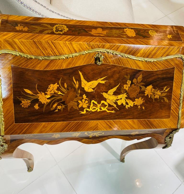 Каркас дуб, шпон розового дерева. Маркетри различных пород дерева.