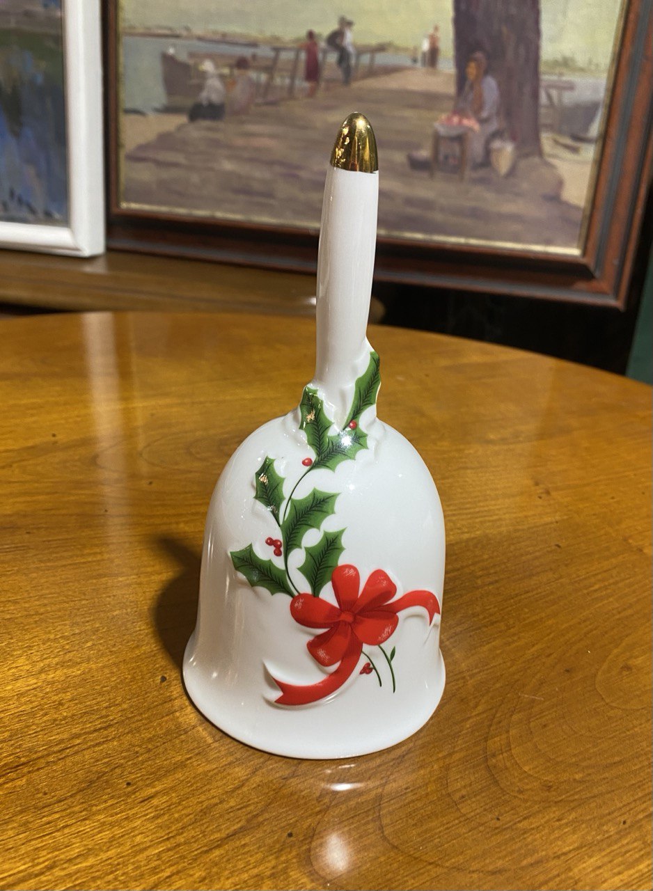 Винтажный рождественский колокольчик и кувшин (ваза для бутонов). Подобные изделия часто изготавливались в Японии в 1970-х годах.
