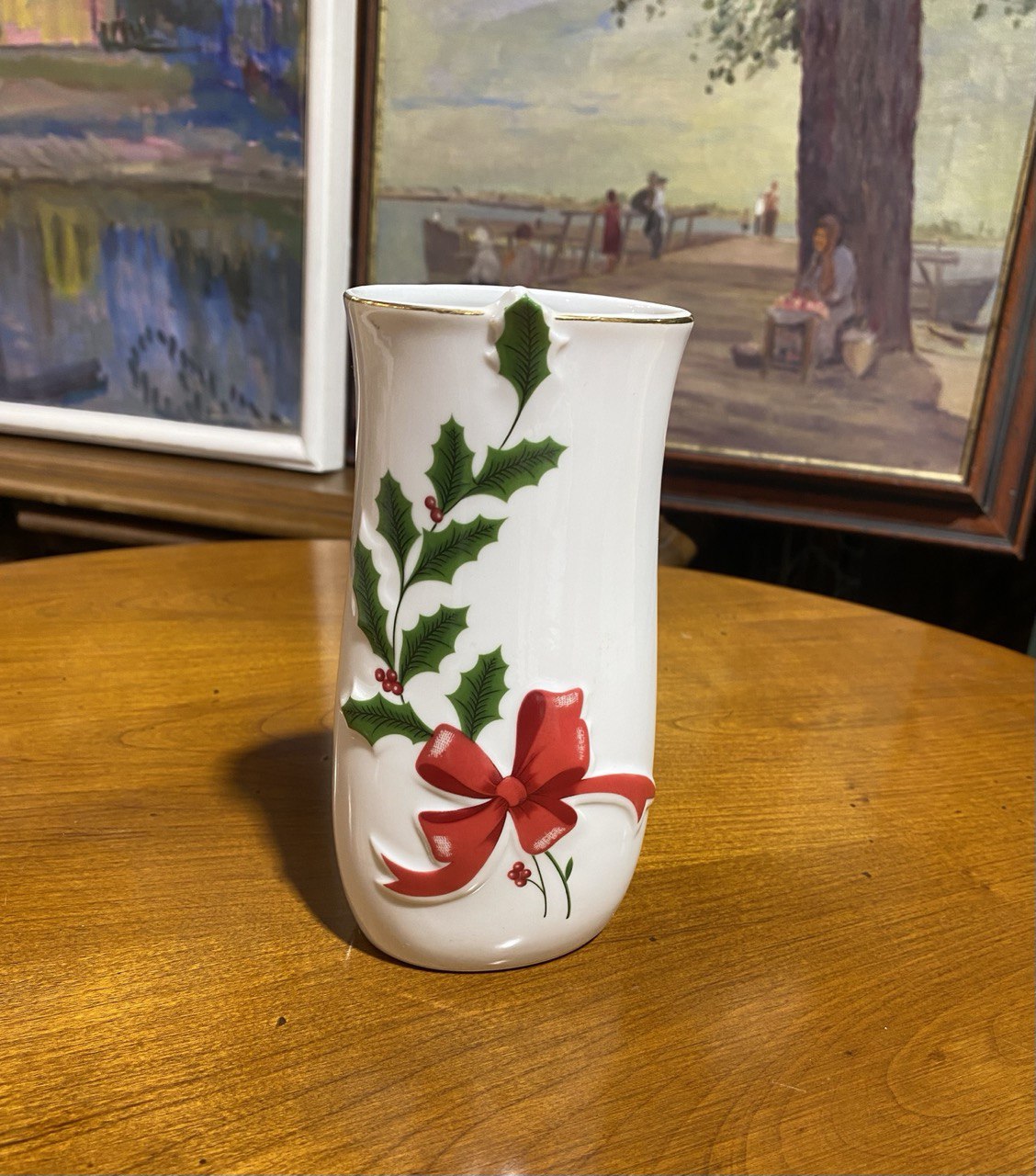 Кувшин/Ваза: Изделия такой формы с рождественскими мотивами обычно классифицируются как вазы для бутонов (bud vases) или небольшие кувшины.