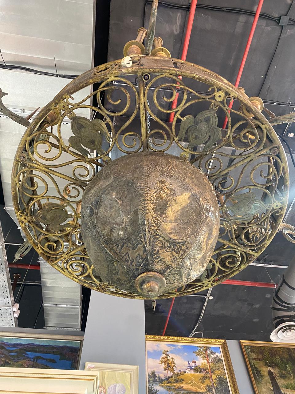Уникальная АНТИКВАРНАЯ люстра с элементами из латуни- исторический реквизит из Большого театра для оперы "Борис Годунов", ручная работа, СССР, 1946 год.