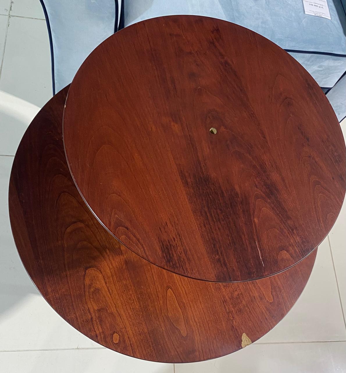Двухъярусный круглый столик прекрасно подойдет и для праздничных мероприятий в качестве фуршетного столика, столика для канапе, винного столика.